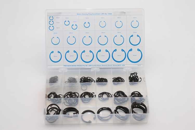 Precision Brand Housing Rings assortment kits contain a range of sizes for convenient usage when required. Housing Rings are internal rings with a tapered design. They maintain constant pressure to prevent slippage of axles and gears. Housing Rings also secure bearings inside machinery housing. Housing Rings assortment kits are well-labelled, making them handy to have around shop tool rooms. Choose from either inch and metric sizes.