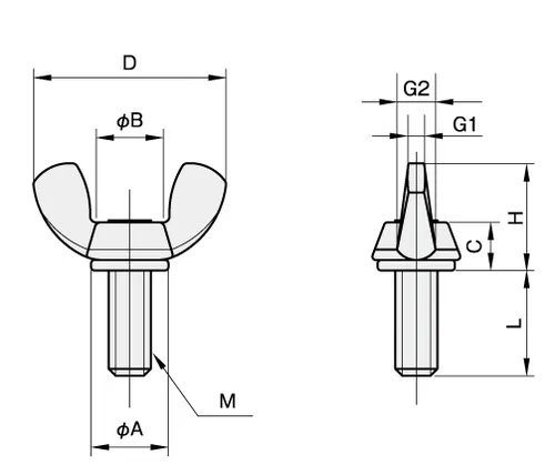 Also known as wing bolts, butterfly bolts are great for frequent fastening and disassembly. The butterfly-shaped handles provide secure grip while reducing fatigue during usage. Made of stainless steel for corrosion resistance