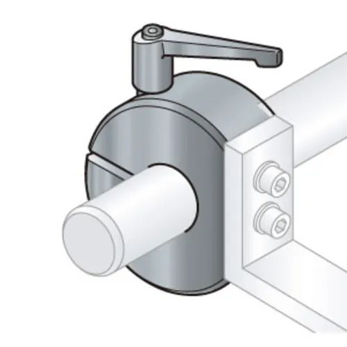 Wedge-lok shaft collars with clamping levers are simple to adjust for limited clamping spaces. The clamping lever is attached to the shaft collar and connected to an internal socket head cap screw. When the internal socket head cap screw is fastened, the Wedge-lok shaft collar secures itself onto the shaft
