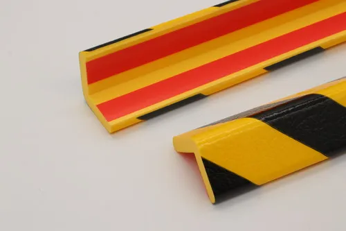 Knuffi® warning and protective bumper guards are very flexible, absorb impact forces, and allow for easy installation even on curved objects. Another advantage is the protective film, which protects the guards against color abrasion even under heavy use. Shown here are bumper foam guards against corners.