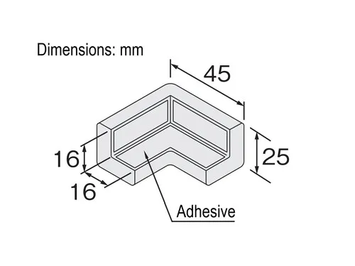Two-way Flat Protective Corner Bracket (For BP2), 16mm x 25mm Wide, 45mm Long, Black, BP12